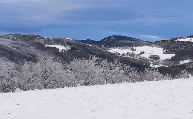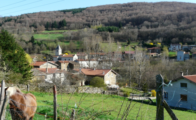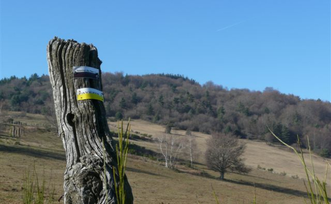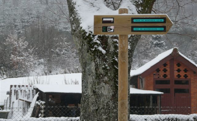 8 km, 2h30, avec passage près des sculptures sur hêtres et des vestiges de l’enceinte du château de Bélize. (Il faut compter 3km et 45 minutes en plus pour faire la boucle de Bélize). Altitude : maxi 875 m ; mini 538 m. Cette balade vous emmène sur le hameau le plus élevé de Pavezin en passant par des chemins, tantôt ombragés, tantôt à découvert.