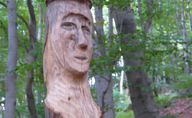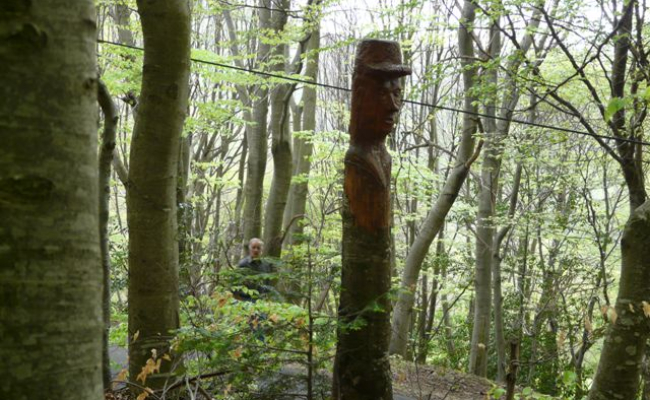 La petite route qui redescend de GRANGE-ROUET vous réserve une belle surprise : sur sa droite, à une centaine de mètres du hameau, vous découvrirez de surprenantes statues dans la hêtraie. Elles sont l’œuvre de Louis CROZET qui sculpte sur les hêtres dans la propriété de la famille de son épouse . Il reconnaît avoir plaisir à mettre en valeur ces arbres qui ont tant fait peiner les générations précédentes, en particulier son beau-père. C’est en effet dans les hêtraies que les hommes sciaient, coupaient, bûcheronnaient afin d’assurer le chauffage de toute la maisonnée, pendant les longs hivers. C’est aussi dans les hêtraies que l’on ramassait les feuilles séchées à l’automne pour en remplir des “paillasses” (sorte de matelas) Admirer avec les yeux, avec le cœur, avec les mains, mais pas avec la tronçonneuse !