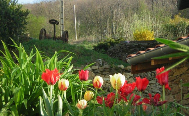 Hélène ORIOL : C’est depuis son jardin insolite de Pierre Blanche (juste au-dessus du hameau des Chavannnes) qu’Hélène a composé des poèmes.