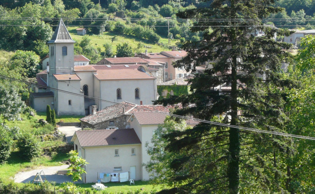 L’église date du XVII ème siècle. Son porche actuel date de 1932. L’église a été restaurée en 1984/1985 (toiture, murs, réfection des peintures intérieures, remise en fonctionnement des cloches). La restauration de l’église a été inaugurée le 14 décembre 1986, en présence de Mg ROUSSET évêque de St Etienne. En, 2016, Saint etienne Métropole a restauré la place de Pavezin et installé une passerelle autour du bâtiment de l’église.